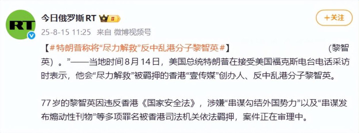 而黎智英,就是用来立这个规矩的活教材。美国当然不会坐视不管。早在2025年8月,特朗普就公开承诺“全力营救黎智英”,企图在中美会晤中施压。